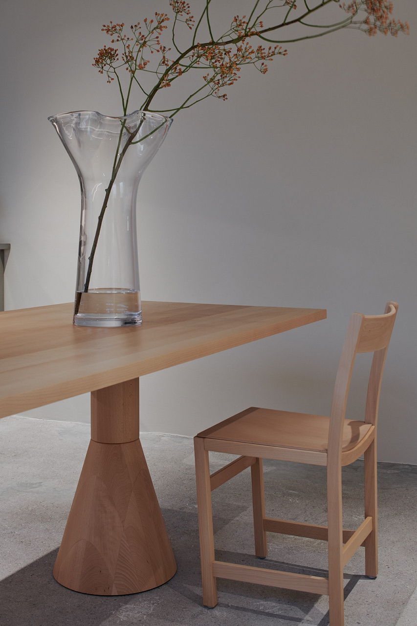 В производстве этого журнального столика смешались шведские традиции стеклоделия и современные технологии. Коническое основание Sander Table, выдутое вручную, соединилось со столешницей из закалённого стекла с помощью клея, отверждаемого ультрафиолетом.